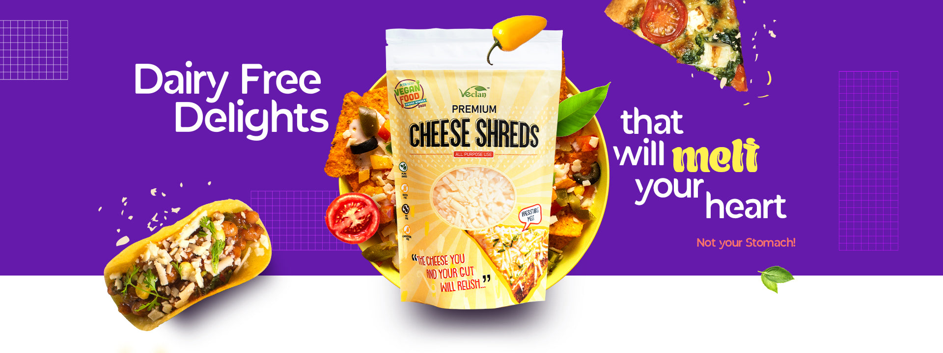 We bring to you 100% PLANT BASED, GLUTEN FREE & CHOLESTEROL FREE, Premium vegan cheese products. A clean alternative to the regular dairy cheese that "You and Your Gut will Relish" guilt-free. Providing irresistable melt for all dishes - pizza, pasta, dosas, nachos, fries, tacos, sandwiches, wraps, rolls and much more. Make the switch and upgrade your health.